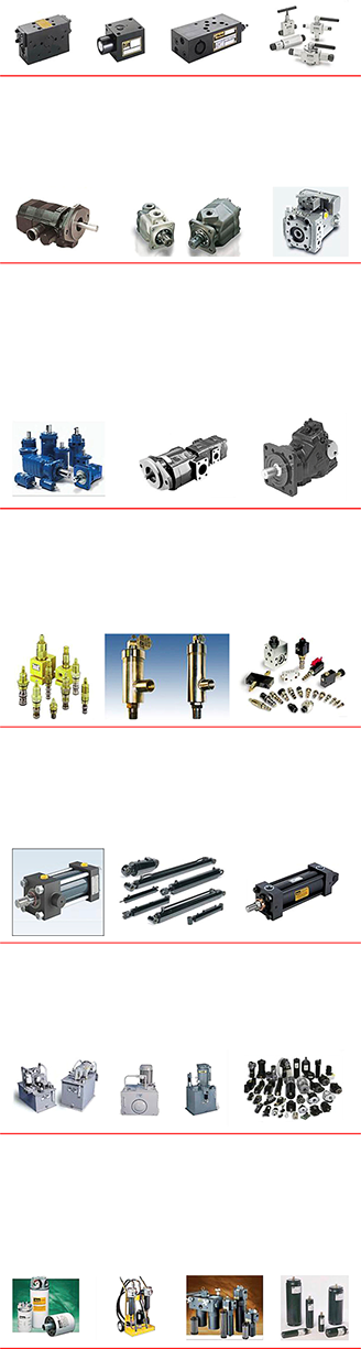 Válvulas direccionales tipo cartucho, divisores de flujo, Check en línea o pilotada, reguladores de flujo, secuencia y Válvulas de alivio.