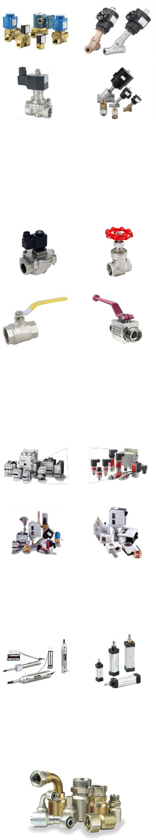 Válvulas solenoides para uso general (agua, aceite, aire) y aplicaciones como: Manejo de gas, ácidos, vapor y medios similares; así como válvulas neumáticas (tipo pistón), angulares para el manejo de fluidos viscosos y altas temperaturas.